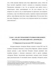 — проанализировать управление трудовым поведением сотрудников в ООО «Автормедиа»;