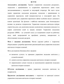 Мета і завдання дослідження. Метою курсової роботи є теоретичне обґрунтування і розробка практичних рекомендацій щодо управління людським капіталом в інтернет-компанії.