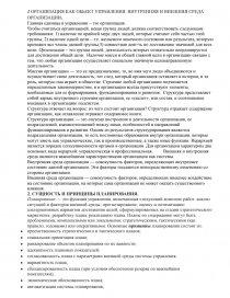 1 ОРГАНИЗАЦИЯ КАК ОБЬЕКТ УПРАВЛЕНИЯ. ВНУТРЕННЯЯ И ВНЕШНЯЯ СРЕДА ОРГАНИЗАЦИИ.