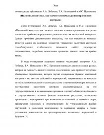 по материалу публикации А.А. Лобачева, Т.А. Николаевой и М.С. Прокошина «Налоговый контроль как элемент системы административного контроля»