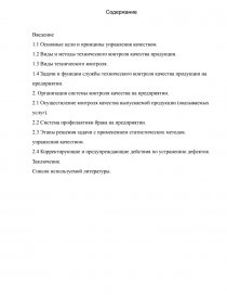Цель курсовой работы: Виды и методы технического контроля качества продукции на предприятии. Проблема повышения качества продукции на предприятии. Рассмотреть основные цели и принципы управления качеством. Организация системы контроля качества на предприятии. Привести пример мероприятий, проводимых на предприятии для улучшения качества. Объектом исследования является сеть ресторанов «Вилка-ложка».
