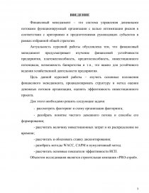 Цель данной курсовой работы – изучить основные положения финансового менеджмента, проанализировать структуру и метод оценки денежных потоков организации, оценить эффективность инвестиционного проекта.