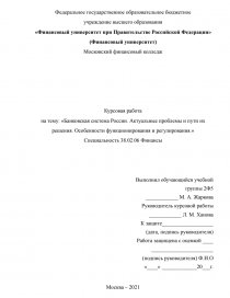 на тему: «Банковская система России. Актуальные проблемы и пути их решения. Особенности функционирования и регулирования.»