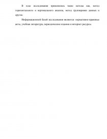 Информационной базой исследования являются: нормативно-правовые акты, учебная литература, периодические издания и интернет ресурсы.