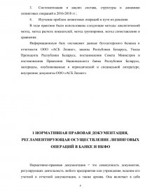 - Ознакомление с нормативной правовой документацией, регламентирующей осуществление лизинговых операций в банке и НКФО;