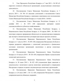 - Указ Президента Республики Беларусь от 7 мая 2015 г. № 189 «О пересчете стоимости обязательств организаций, осуществляющих лизинговую деятельность».