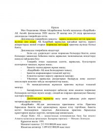 Мен Ондағанова Айжан Айдарбековна Ақтөбе қаласында «KaspiBank» АҚ Ақтөбе филиалында 2020 жылғы 20 қаңтар мен 24 сәуір аралығында дипломалды тәжірибеден өттім.