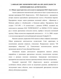 2. ФИНАНСОВО-ЭКОНОМИЧЕСКИЙ АНАЛИЗ ДЕЯТЕЛЬНОСТИ КОРПОРАЦИИ ПАО «БУРЯТЗОЛОТО» 14
