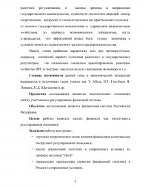 Предметом исследования являются экономические отношения между участниками регулирования финасовой системы.