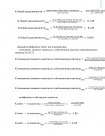 Эта группа коэффициентов нацелена на измерение долгосрочной способности фирмы по выполнению своих обязательств. Коэффициент общей задолженности (рекомендуемое значение: 0 <=К <=0,5) характеризует содержание заемных средств в каждом рубле активов предприятия и рассчитывается по формуле: