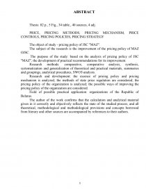 The purpose of the study: based on the analysis of pricing policy of JSC "MAZ", the development of practical recommendations for its improvement.