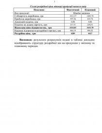 На основі вихідних визначимо склад роздрібної ціни на продукцію певного виду фактично і у плановому періоді.
