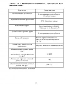 2.1 Краткая организационно-экономическая характеристика ОАО «Витебские ковры»