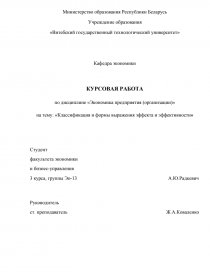 на тему: «Классификация и формы выражения эффекта и эффективности»