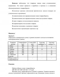 Вывод: Организацией в отчетном периоде по группе продовольственных товаров план был не довыполнен на 45,6 %, что в сумме составило 3736, а по удельному весу -31,8 %. По группе непродовольственных товаров в отчетном периоде организация выполнила план на 203,5 %, что в сумме составило 4036 тыс. руб. по удельному весу 31,8 %. В целом по организации план был выполнен на 102,5 %, что в сумме составило 400 тыс. руб.
