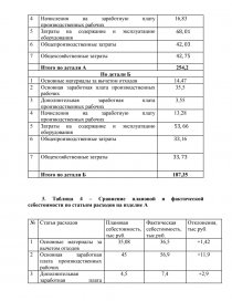 5. Таблица 4 – Сравнение плановой и фактической себестоимости по статьям расходов на изделие А