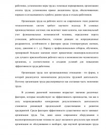 Организация труда - это приведение трудовой деятельности людей в определенную систему, характеризующуюся внутренней упорядоченностью, согласованностью и направленностью взаимодействия для реализации совместной программы и цели. Организация, труда имеет как статический аспект, т. е. функционирование, поведение, взаимодействие людей в процессе трудовой деятельности. Под влиянием научно-технического прогресса, изменения средств производства, технологии, форм и методов управления и т. д. меняются структуры труда, происходит замена одних форм организации труда другими, более эффективными в новых конкретных условиях.