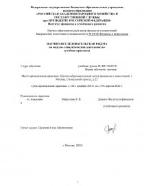 Место прохождения практики: Научно-образовательный центр финансов и инвестиций, г. Москва, Сигнальный проезд, д.23.