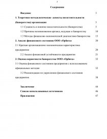 Целью работы является оценка вероятности банкротства организации с использованием финансово-экономических методов и выработка рекомендаций по укреплению финансового состояния предприятия.