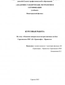 На тему: «Освоение поверки вольтметров щитовых на базе Саратовского РНУ АО «Транснефть – Приволга»