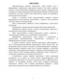 Производственная практика представляет собой важный этап в формировании необходимых компетенций студентов. Она имеет огромную ценность, так как обеспечивает приобретение новых знаний и закрепление уже имеющихся. В период проведения производственной практики студенты имеют возможность не только углубить свои теоретические знания, но и приобрести ценные практические навыки.