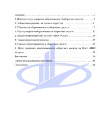 Целью данной работы является анализ состояния и пути ускорения эффективности использования оборотных средств на примере ПАО «НПО «Алмаз».