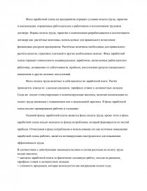 Фонд заработной платы на предприятии отражает условия оплаты труда, гарантии и компенсации, отражённые работодателем и работником в коллективном трудовом договоре. Нормы оплаты труда, гарантии и компенсации разрабатываются в коллективном договоре как расчётные величины, используемые для правильного исчисления финансовых ресурсов предприятия. Расчётные величины необходимы для правильного расчёта налогов, страховых платежей и другие необходимых выплат. Фонд заработной платы отражает совокупность