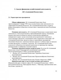 2. Анализ финансово-хозяйственной деятельности АО «Алюминий Казахстана» .................................................................................................................................... 13