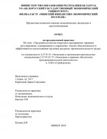 По теме: «Трудовой коллектив (персонал) предприятия: правовое регулирование, планирование и управление. Анализ обеспеченности и эффективности использования трудовых ресурсов, производительности труда».