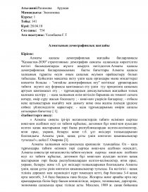 Аты-жөні:Рахимова Аружан Мамандығы: Экономика Курсы: 1 Тобы: 141 Күні: 28.04.18 Сөз саны: 754 Аға оқытушы: Үсембаева Ғ.Т