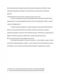 Цель работы – провести диагностику экономической безопасности в системе национальной безопасности страны и выявить существующие и потенциальные угрозы экономической безопасности России на современном этапе.