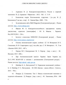 Інформаційною базою для роботи стали законодавчі акти з питань конкуренції, інформаційні ресурси мережі «Інтернет», статистичні дані Державного комітету статистики України, статистична інформація міжнародних організацій, провідних наукових та дослідних установ, монографії та статті вітчизняних і зарубіжних вчених у періодичних виданнях, матеріали науково-практичних конференцій тощо.