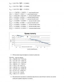 - Обрахунок коефіцієнтів цінової еластичності попиту для всіх інтервалів цін, визначення відрізків еластичного та нееластичного попиту на кривій попиту.