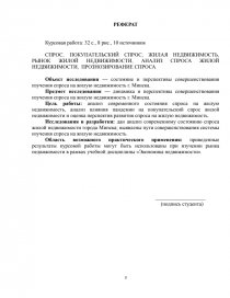 Исследования и разработки: дан анализ современному состоянию спроса жилой недвижимости города Минска; выявлены пути совершенствования системы изучения спроса на жилую недвижимость.