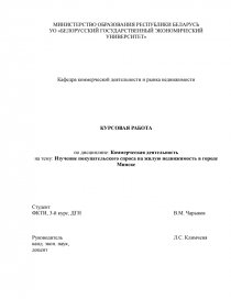 на тему: Изучение покупательского спроса на жилую недвижимость в городе Минске