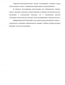 Теоретико-методологическую основу исследования составили труды отечественных ученых, посвященные проблематике курсовой работы.