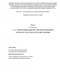 на тему: ИНТЕНСИФИКАЦИЯ РОССИЙСКОЙ ЭКОНОМИКИ