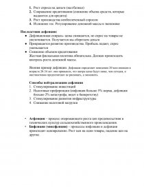 - Дефляция – процесс обратный инфляции, разорение предприятий и банков, общее снижение уровня цен.