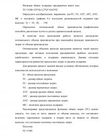 Рассматривая представленную функцию общих затрат (ТС) можно увидеть, что одна ее часть зависит от объема выпуска, что составляют величину переменных издержек, а вторая часть не зависит от объема выпуска, что составляет величину постоянных затрат.