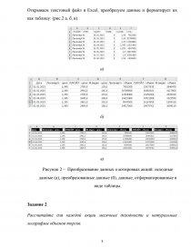 Открываем текстовый файл в Excel, преобразуем данные и форматирует их как таблицу: (рис.2 а, б, в).