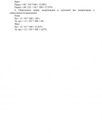План ОПФ ср = 230 + (16 * 8)/12 – (10 * 5)/12 = 230 + 10,67 – 4,17 = 236,5 тыс. руб.