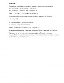 Ожидаемое значение прибыли для двух решений одинаковое, но коэффициент вариации меньше у решения 2, что говорит о том, что его риск будет также меньше. Выбор следует сделать в пользу решения 2.