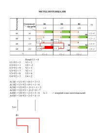 A4:B1 = U4+V1 = 2+3 = 5 > 4 ∆ -1 -> опорний план неоптимальний