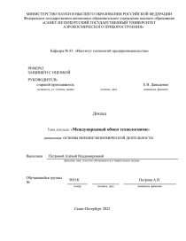 Тема доклада: «Международный обмен технологиями»