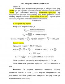 Висновок: За рахунок зростання швидкості обороту оборотних коштів на 0,25 (2,25-2) обороти, підприємство має можливість додатково реалізувати продукцію на суму 3750 грн відносно попереднього року.
