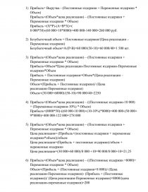 - Какая будет прибыль в результате сокращения переменных издержек на 10% и постоянных издержек на 10 тыс. руб;