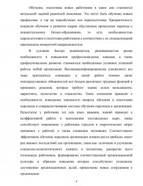 Обучение, подготовка новых работников в наши дни становится актуальной задачей рыночной экономики. Это могут быть обучение новым профессиям, а так же переобучение или переподготовка. Приоритетность вопросов обучения и развития кадров обусловлена процессами перехода к концептуальному бизнес-образованию, то есть необходимостью переподготовки и подготовки работников в соответствии с их специализацией максимально конкретной направленностью.