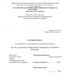На тему: организация межбюджетных трансфертов в Российской Федерации