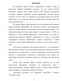 на тему: «Особенность функционирования предприятий, организованных в форме франчайзинга: мировой опыт, российская практика»
