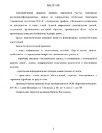 Технологическая практика является важнейшей частью подготовки высококвалифицированных кадров по направлению подготовки бакалавров Направление подготовки 38.03.01 «Экономика» профиль: «Экономика и управление на предприятии и имеет своей задачей закрепление теоретических знаний, полученных обучающимися во время обучения, приобретение более глубоких практических навыков по профилю будущей работы.
